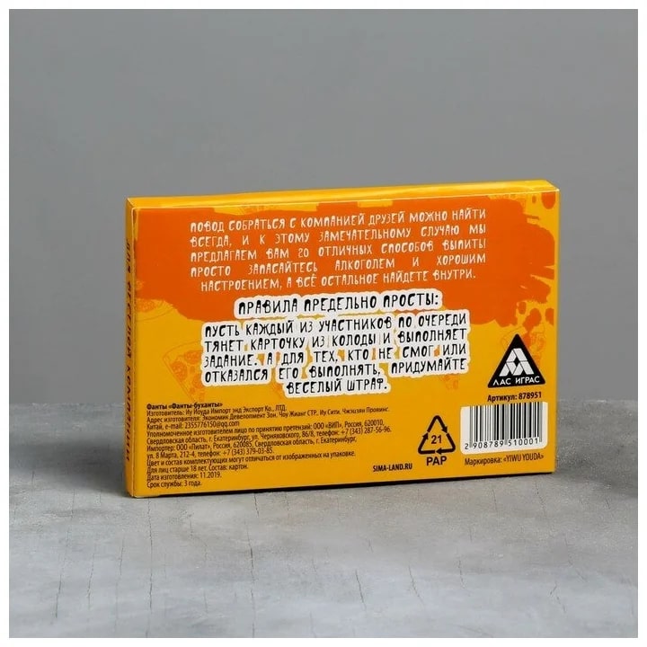 Купить игра для компании "фанты буханты" 20 карт от 100 руб. с доставкой до пункта выдачи в Саках. Интернет магазин ДекаМаркет. Оплата при получении.